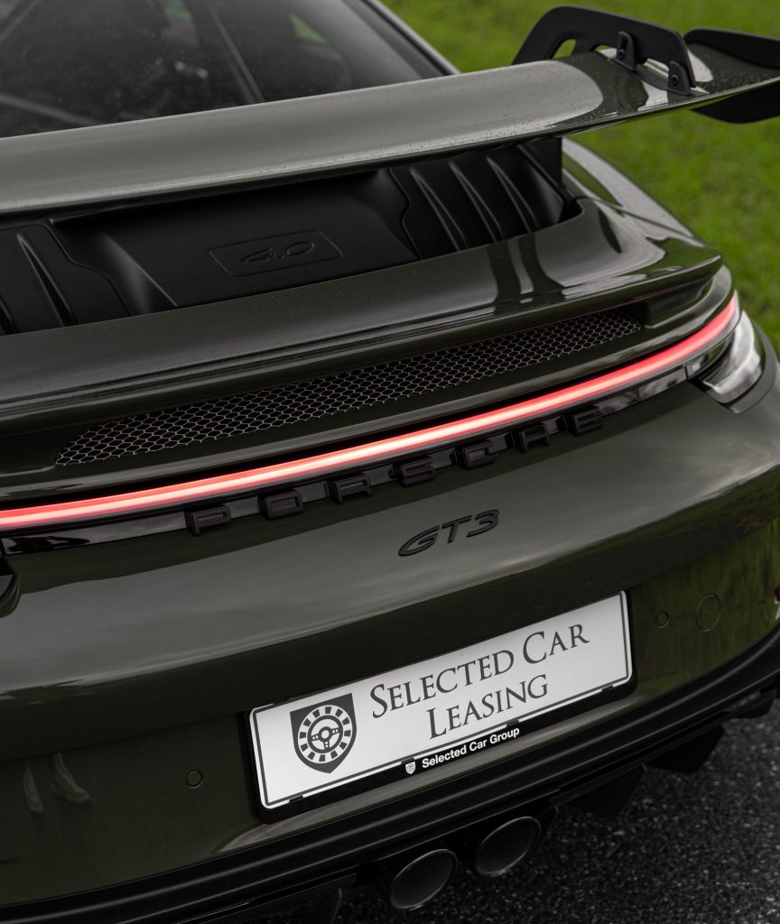 Olivengrøn? – Ja tak. Det er ikke bare en farve, det er en erklæring. På en GT3 bliver den til noget mere – en farve, der både rummer dybde og mystik, og som perfekt komplimenterer motorens rå kraft og bilens sublime design. Under solens stråler forvandles den, som om bilen tager på eventyr i sin egen, grønne verden.