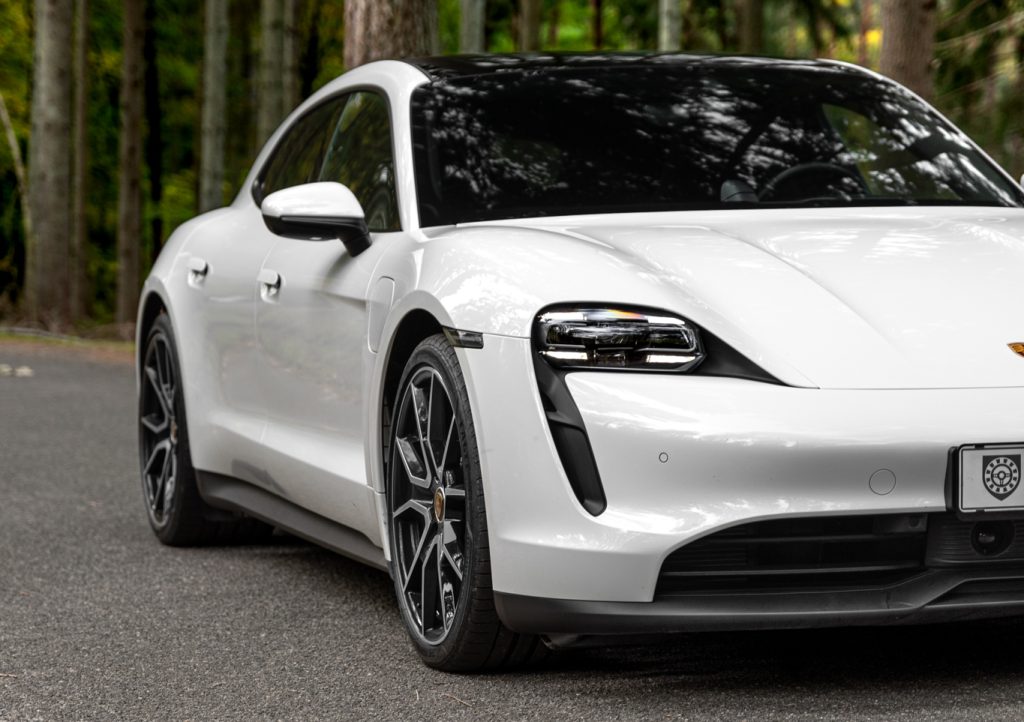 Et lavt tyngdepunkt bevirker at køreegenskaberne er, som du kender dem fra en Porsche – nemlig helt fantastiske. Og med den aktive støddæmpning, PASM, der læser vejens forhold bedre end din lokale spåkone læser håndflader, kan Taycan’en køre om hjørner, som var den en 911’er – bare med plads til både lilleputfodboldhold og labrador.